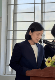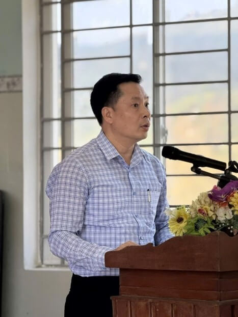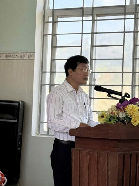 Ông Nguyễn Văn Lê – Chủ tịch xã Ngô Mây - Đại diện chính quyền địa phương và bà Đỗ Thị Cương – Hiệu trưởng trường THCS Cát Tiến đại diện các trường được nhận tài trợ phát biểu chia sẻ công tác ứng phó với thiên tai tại địa phương và cam kết sử dụng hiệu quả thiết bị trong công tác ứng phó thiên tai và đảm bảo an toàn trường học.